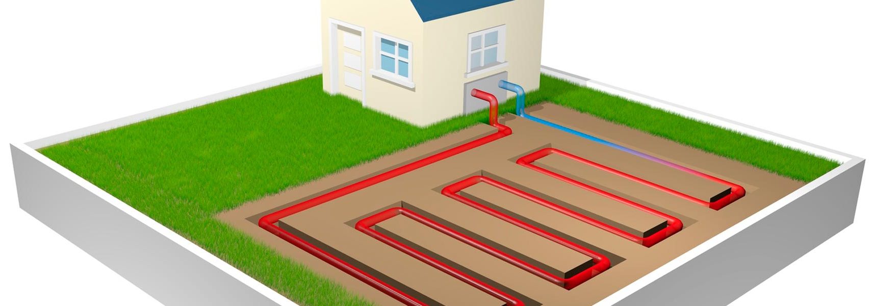 Der Fächenkollektor besteht aus einem flächig verlegten Geothermierohr. Dieses Rohr wird in eine spezielle Kollektorwanne eingelegt, die in ein steinfreies Sandbett eingebettet ist. Je nach benötigter Entzugsleistung, werden mehrere Kollek-torkreise über einen Verteiler zur Wärmepumpe geführt. Durch die Zuführung von Regenwasser oberhalb der Kollektorwanne wird der Boden permanent feucht gehalten, was die Entzugsleistung des Systems deutlich erhöht.
