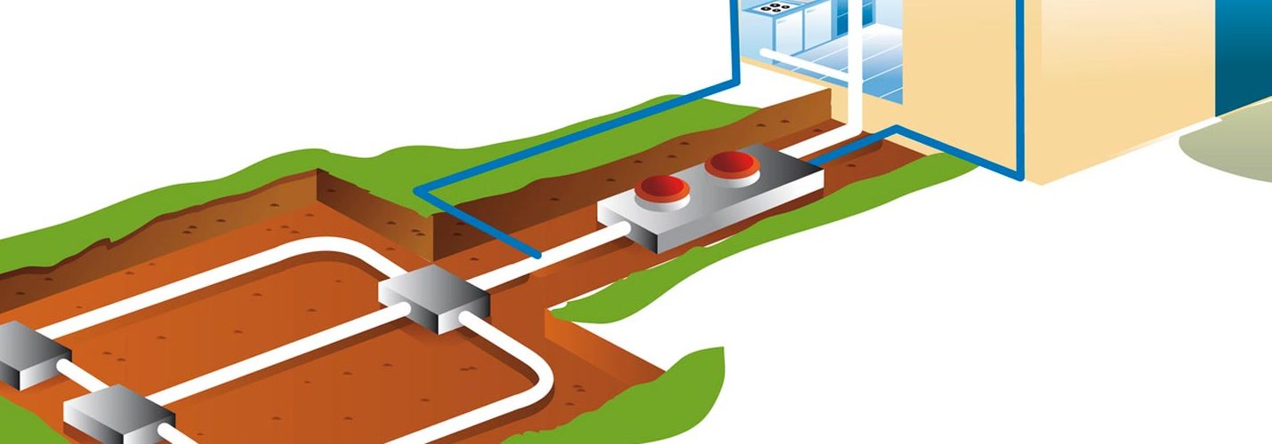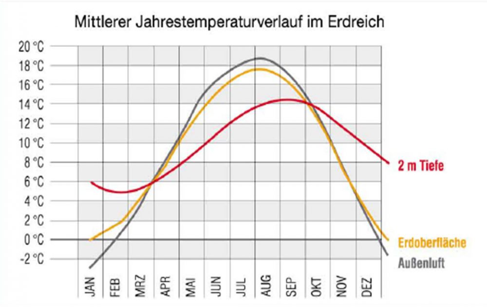 - Hohe Effizienz durch oberflächennahe Verlegung ( in ca. 1,5 bis 2,0 m Tiefe)