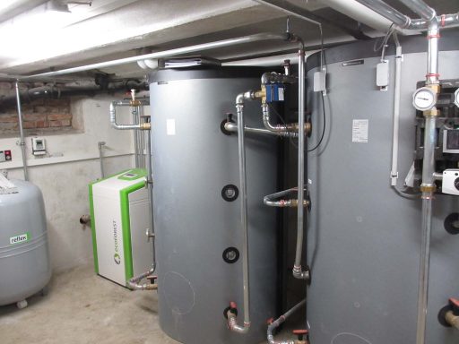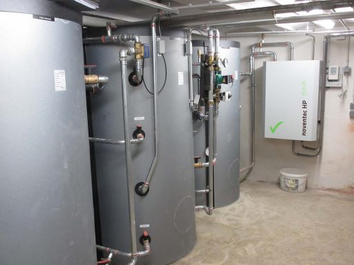 Gebäude wird im EG und 1.OG über bestehende Heizkörper mit der Wärmepumpe beheizt (bis -2°C Außentemperatur, danach Umschaltung auf bivalente Energiequelle), die Heizung im Dachgeschoss sowie die Warmwasserbereitung des kompletten Gebäudes wird über die Wärmepumpe versorgt.