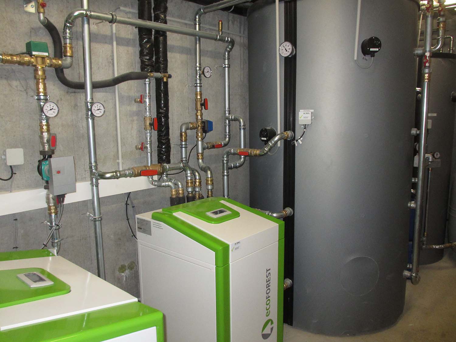 - Sole-Wärmepumpe (ecoFOREST, modulierend von 12-40 kW),